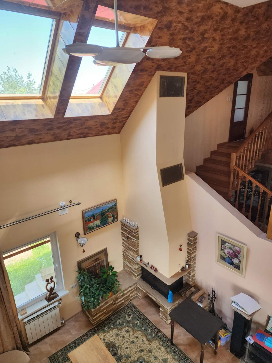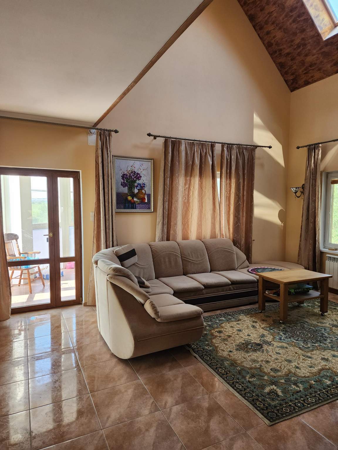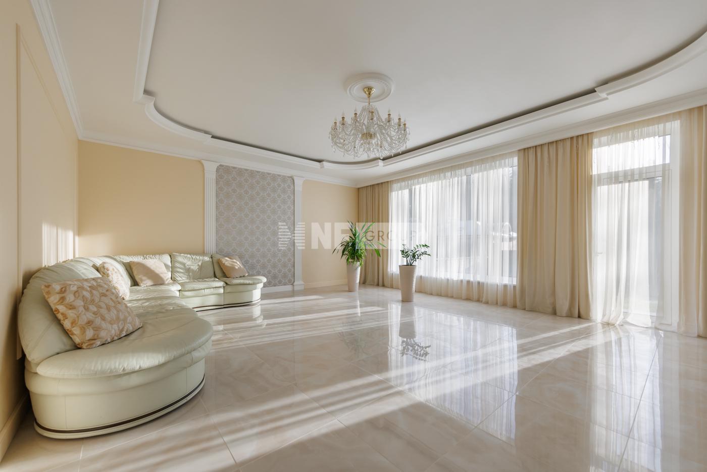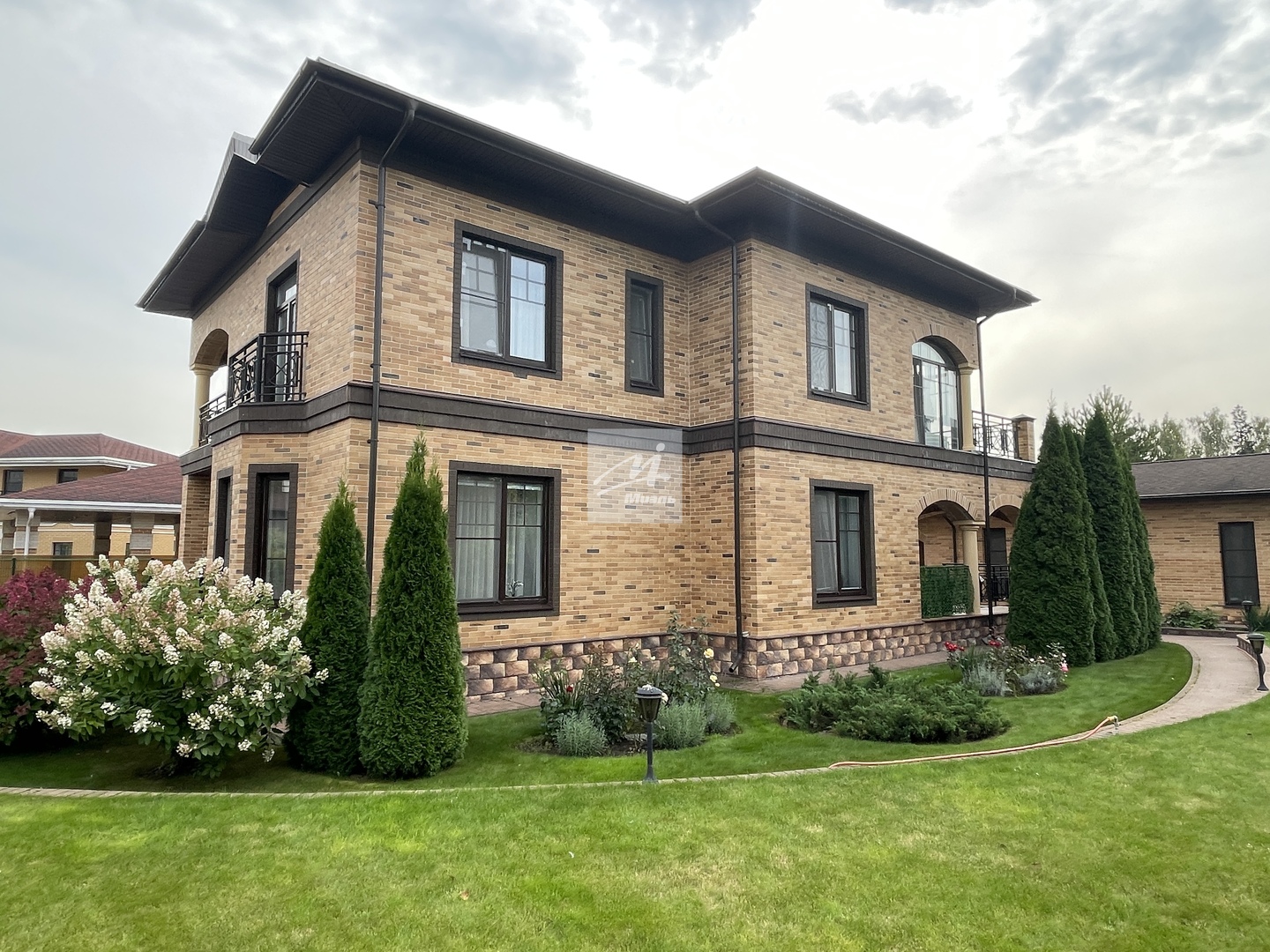 Дом построен в 2012 году по технологии несъёмной опалубки. В цокольном этаже гараж на две машины, бильярдная, кладовая, бассейн. На первом этаже прихожая, комната, зал, с камином. Зал имеет второй свет, высота потолка 6 метров. Столовая, кухня, зимний сад, лоджия 12 кв.м., котельная с одним электрическим котлом и двумя газовыми котлами (один для дома, второй, для бассейна), сауна, душ, туалет. На втором этаже три спальни, гардеробная, ванная комната 26 кв.м., с гидромассажной ванной и душем, лоджия, с гимнастическими тренажёрами. На первом этаже один туалет, на втором два и один туалет в мансарде. Мансарда площадью 49 кв.м. В дом ведут три входа: парадный, второй - хозяйственный, с противоположной стороны и третий, через гараж, в цокольном этаже. Дом расположен на участке 90 соток.