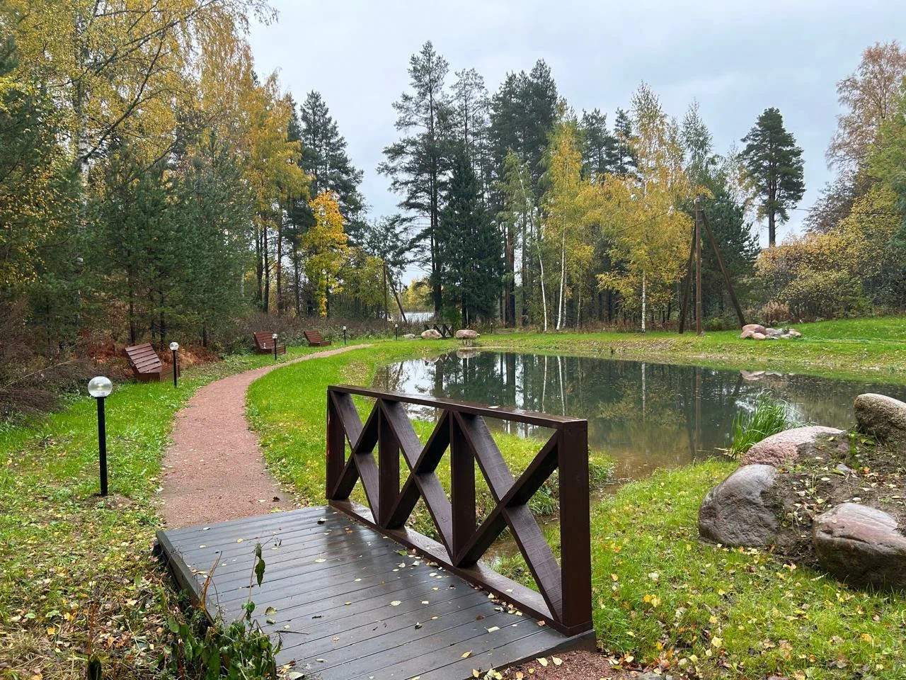 Поселок находится на удалении от трассы и окружен вековыми соснами. Внутри территории поселка есть взросыле деревья и строится экотропа на берегу ручья.