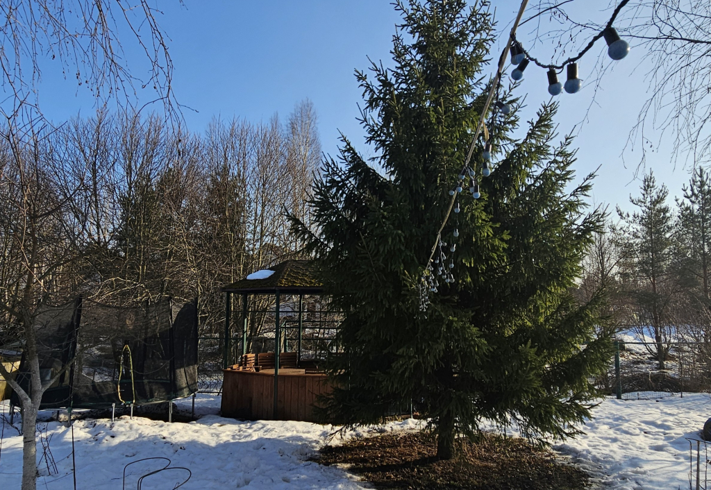 На участке стоит беседка с садовой мебелью, вагончик (электричество подведено), батут, качели и теплица. На участке высажены плодовые, декоративные деревья и кустарники (Яблони, сирень, ёлки, берёзы, смородина, крыжовник, малина), украшают участок кусты гортензий,пионы,лилии,розы и т.д. За домом, за границей участка протекает река Саблинка (участок не затапливает), вдоль неё много зелени, соседей не видно и не слышно.