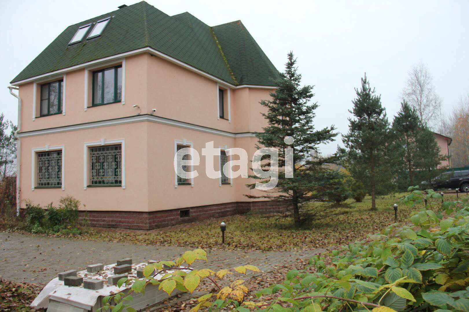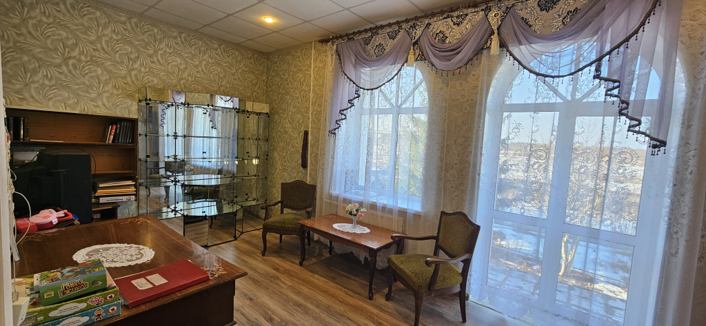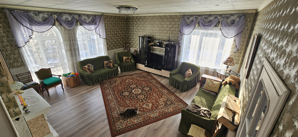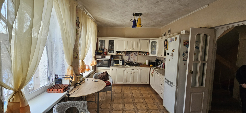 В доме четыре спальни, большая гостинная с выходом на балкон-террасу (без ограды), кабинет также с выходом на балкон-террасу( без ограды), большой хол при входе и кухня. Везде стоят 2-х камерные стеклопакеты. На каждом этаже имеются туалетные комнаты и душевые, в цоколе совмещённый санузел с ванной, несколько подсобных помещений с выходом в гараж и выходами на участок.В котельной, которая находится на цокольном этаже, установлены два котла: газовый и твёрдотопливный, могут работать как вместе, так и раздельно. Электричество 15 кВт. Вода-скважина на участке. Канализация-две выгребных ямы (через дорогу проходит центральная канализация, при желании можно подключиться).