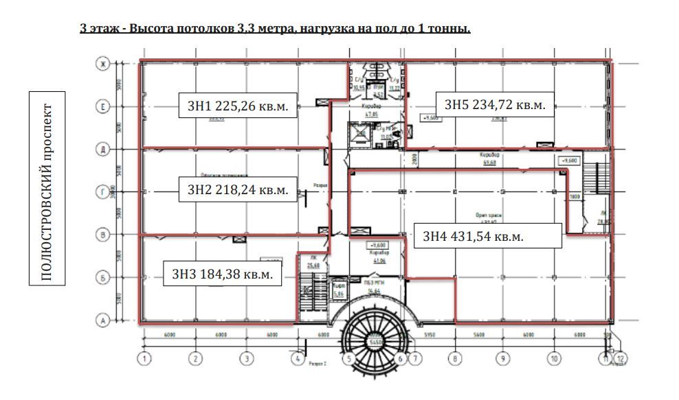 3 этаж - 1475 м2, высота потолков 3.3 м.