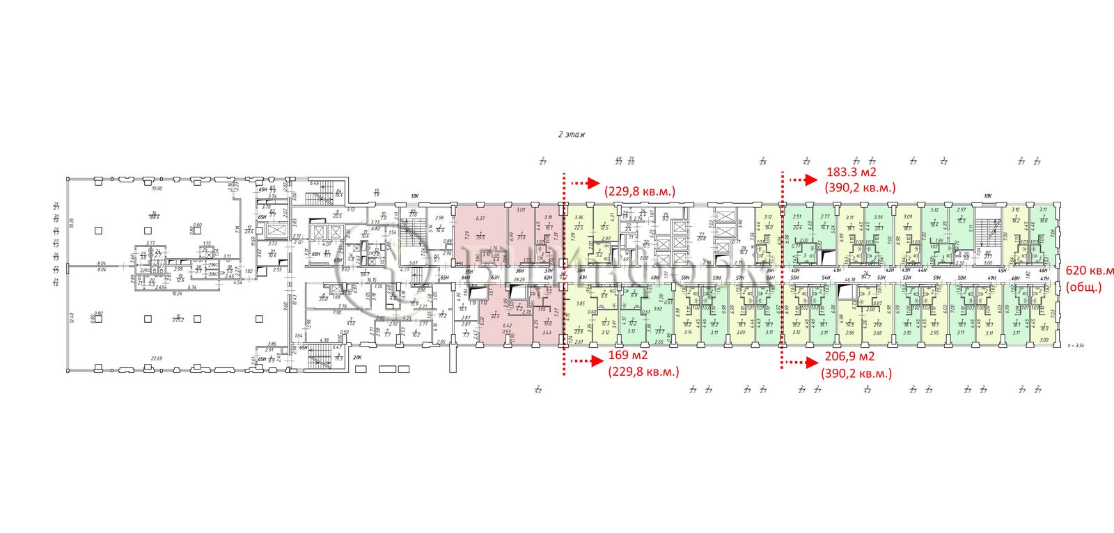 Предлагаемые помещения занимают часть 2-го этажа, открытая коридорная линия (по соображениям пожарной безопасности)