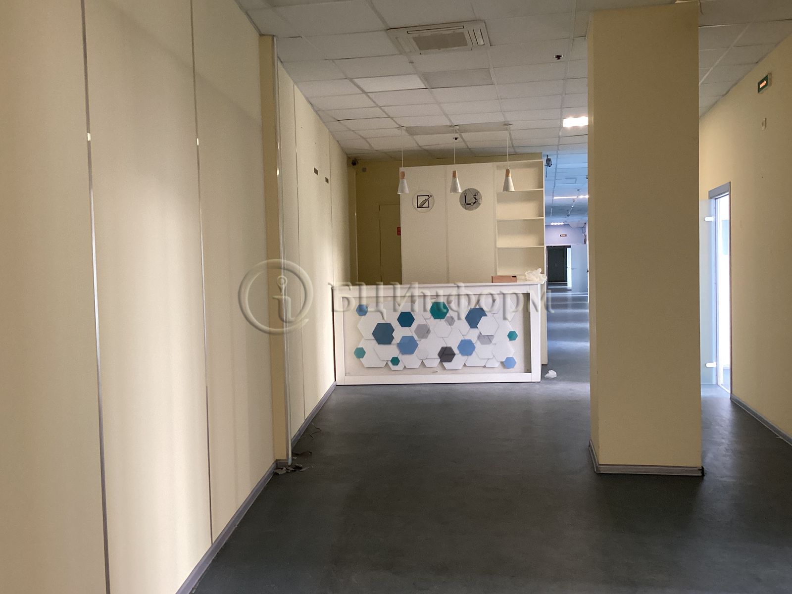 В хорошем состоянии. Произведена классическая офисная отделка. Стены - обои под покраску, подвесные потолки "Армстронг".