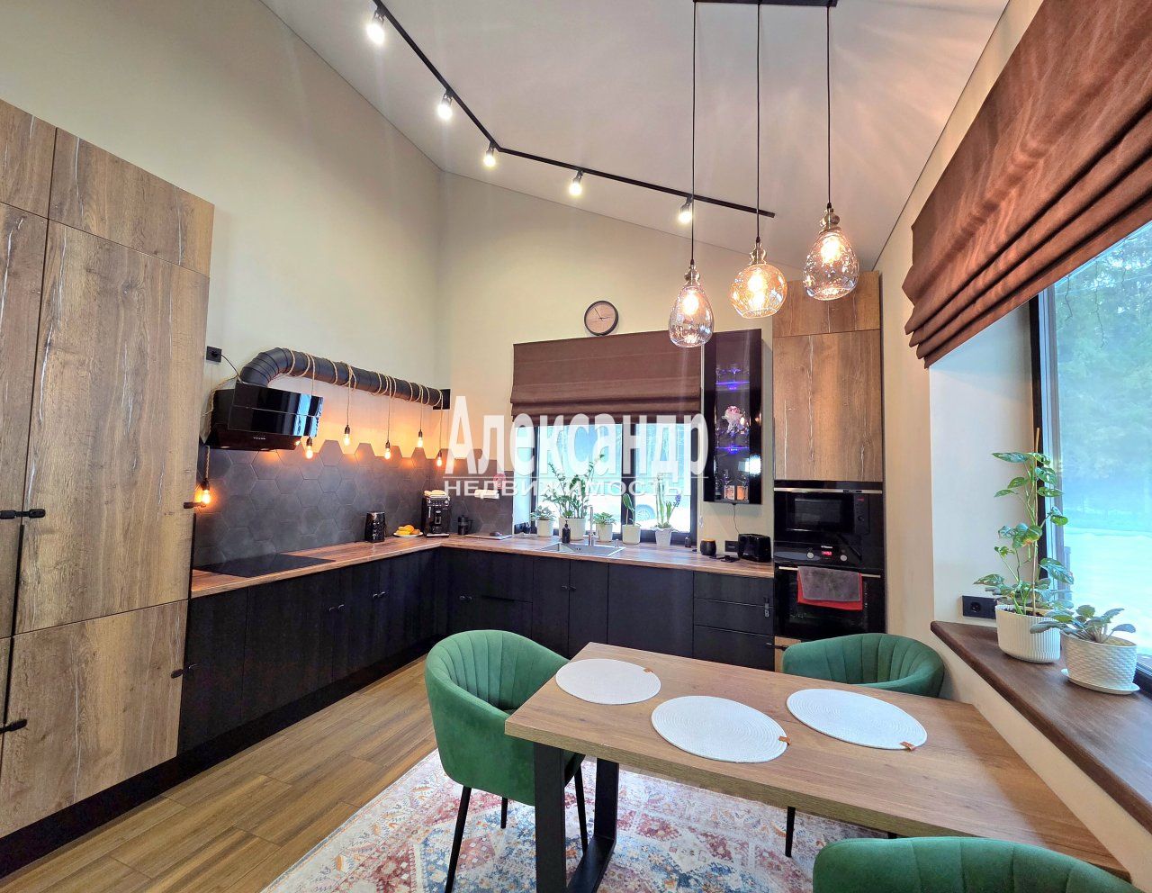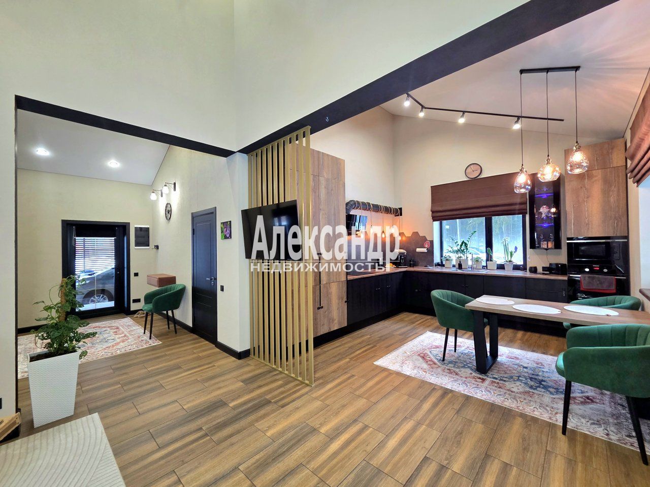 - Кухня-гостиная 35.5м с панорамными окнами и выходом на террасу.