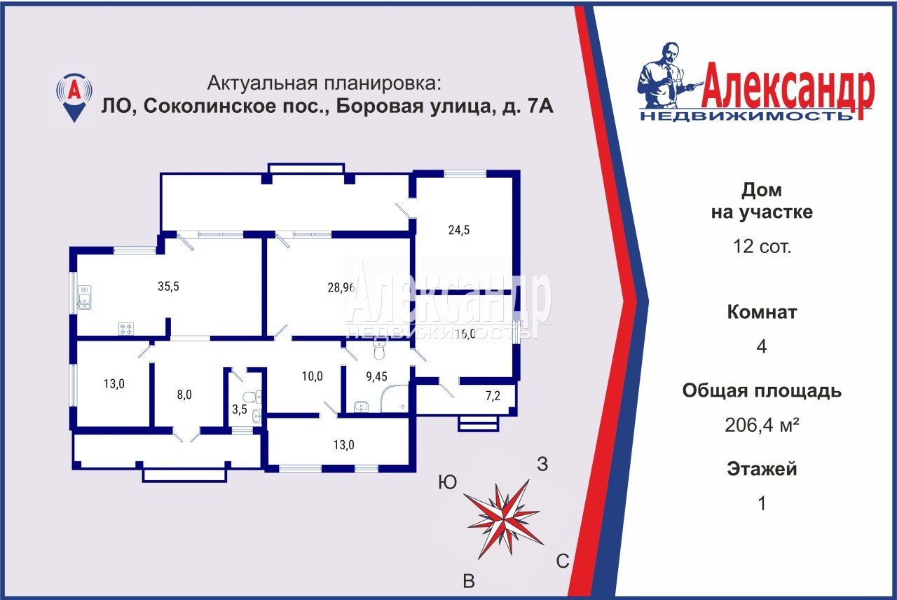 - 3 Спальни ( 28.95м , 13.6м и 13м ) одна из них с окнами в пол и выходом на террасу.