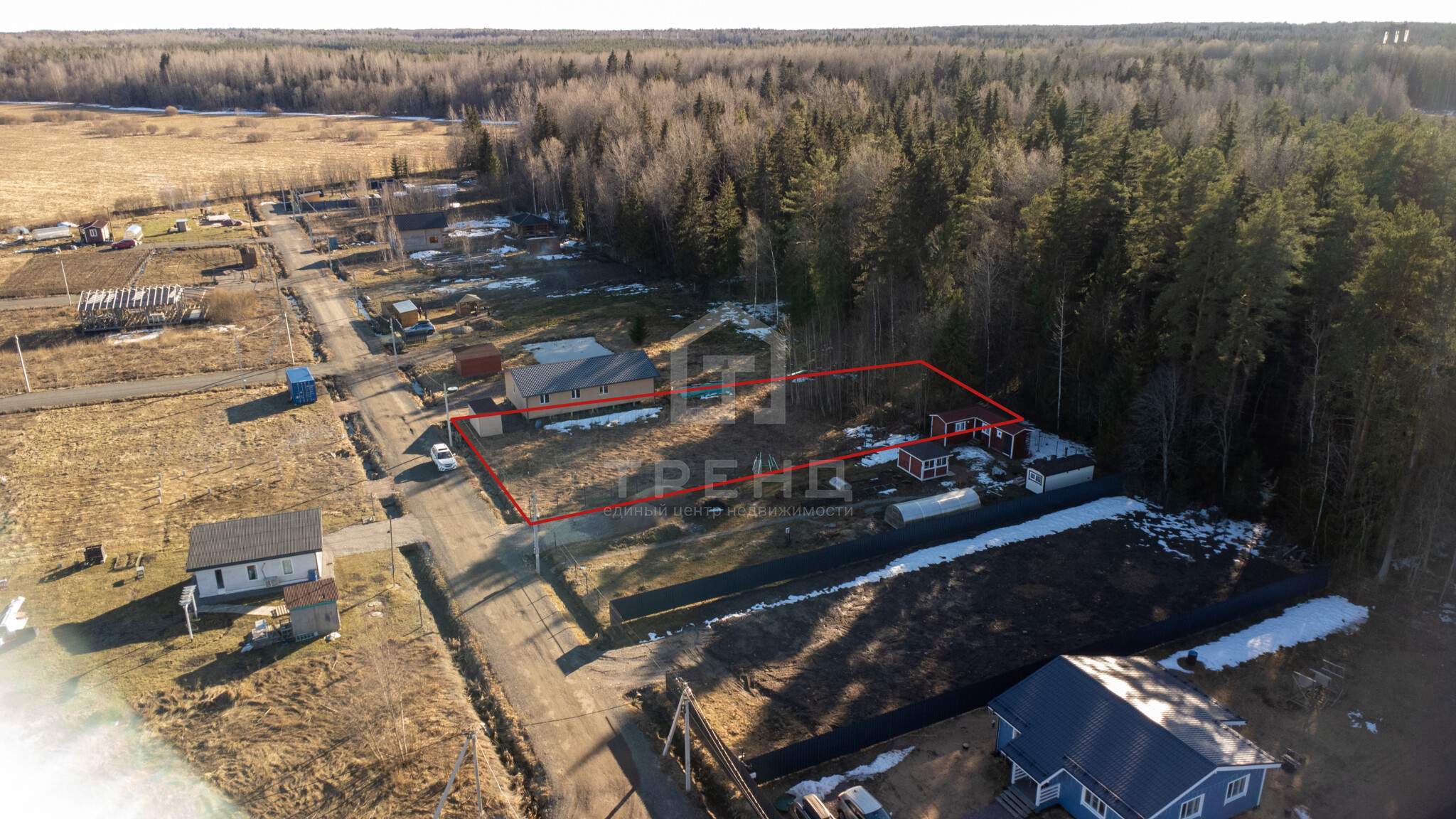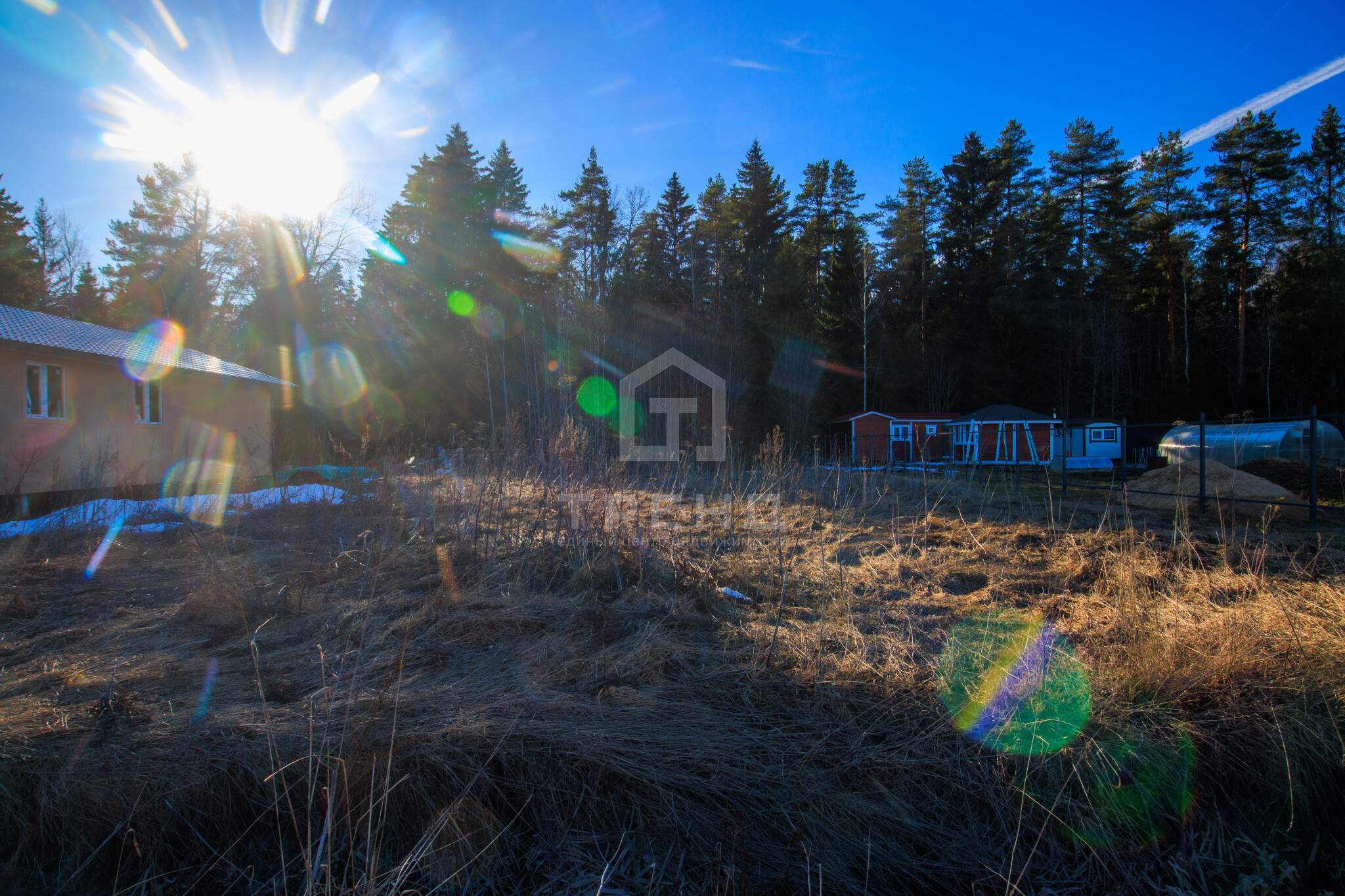 Участок граничит с лесом.