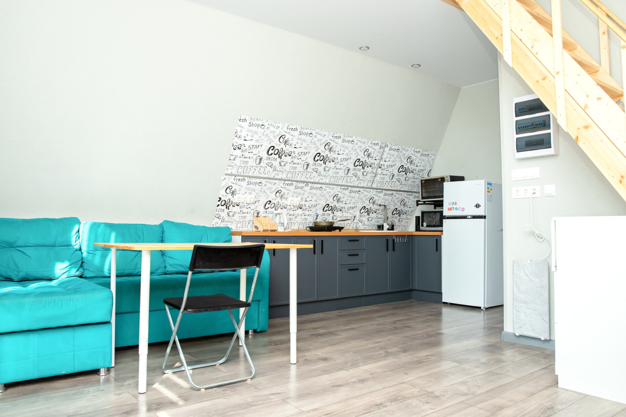 В доме большая кухня-гостиная (30кв.м), три комнаты на первом и втором этаже - небольшие, но очень уютные. Два санузла с окном. Дом компактный, но очень уютный. располагает к теплым семейным посиделкам и приему гостей.