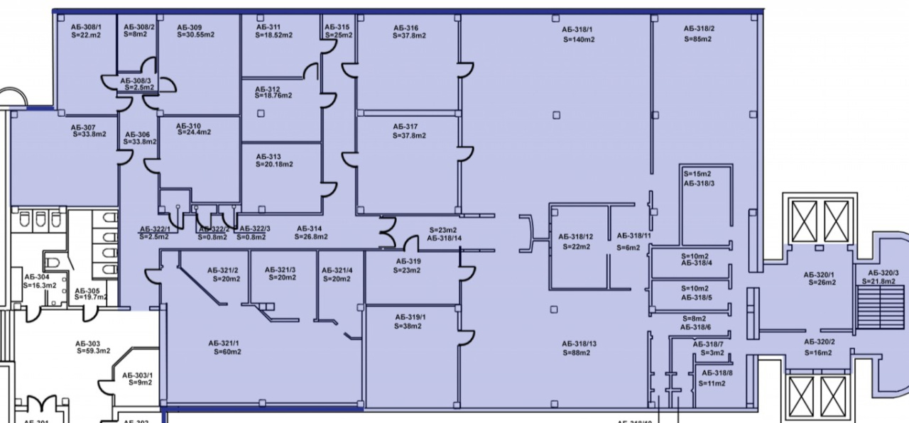 На этаже расположены 12 офисных помещений, общей площадью 404 м2 и блок помещений для сферы питания, кафе- общей площадью 515 м2, состоящий из двух залов и оснащенный профессиональным оборудованием.