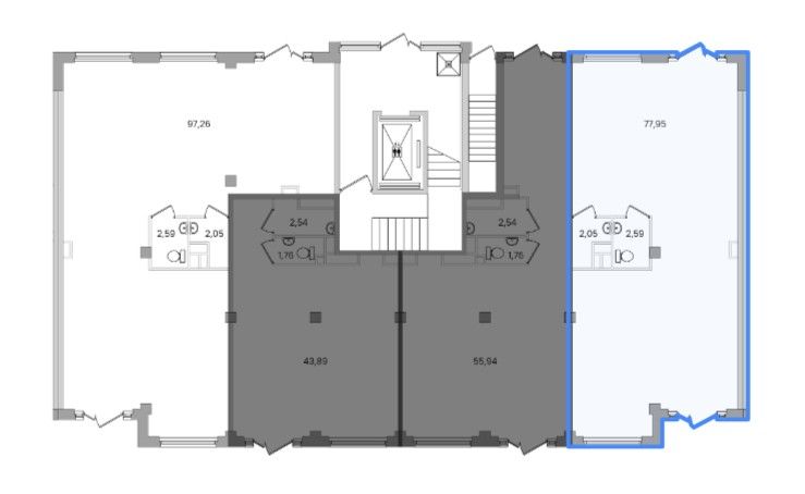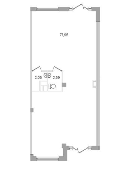 Витринные окна. Есть мокрая точка и санузел.