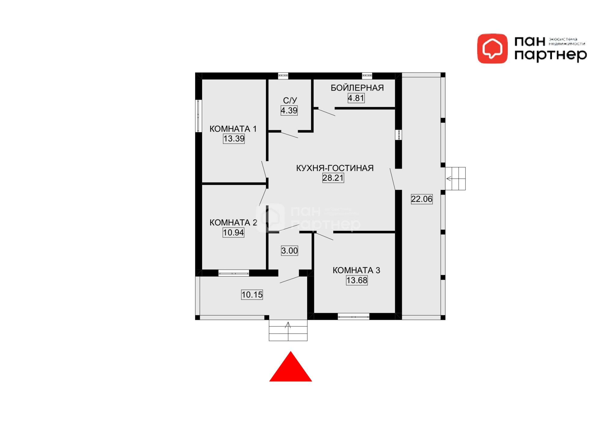 До мелочей продуманная планировка дома позволит комфортно проживать даже большой семье: просторная кухня-гостинная будет объединять всех членов семьи вместе, а три отдельные спальни создадут комфортное пространство для каждого в отдельности. Две терассы позволяют увеличить пространство дома, организовав не только обеденное пространство на свежем воздухе всей семье, а также место для работы или отдыха.