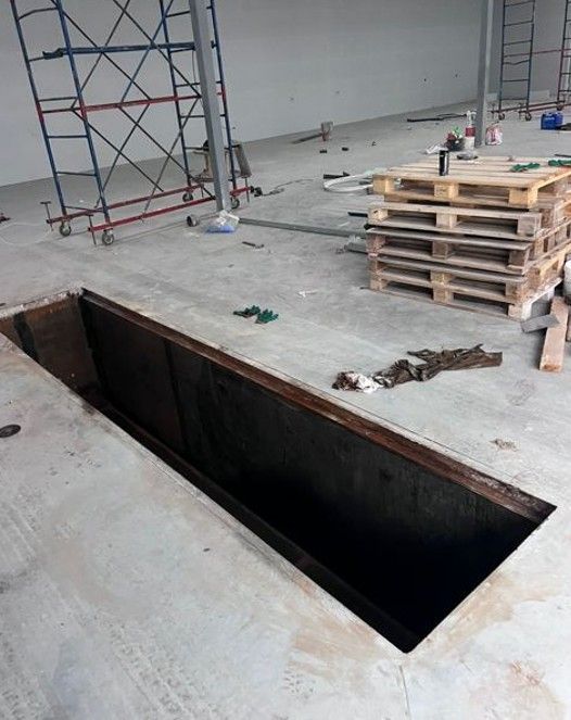 Есть 2 ямы, длина 6 м, ширина 0,9 м. Высота бокса над ямой - 5,9 м.