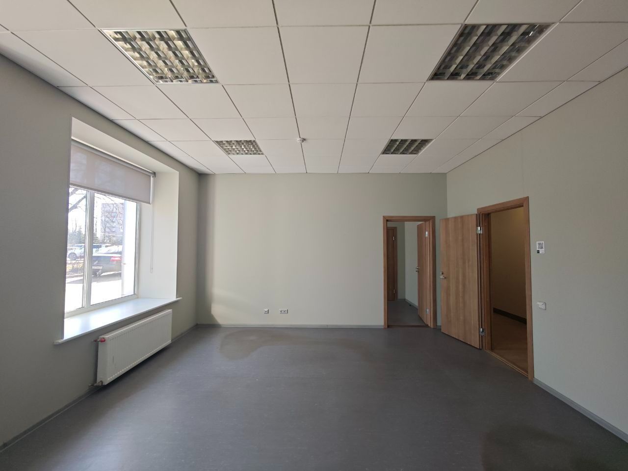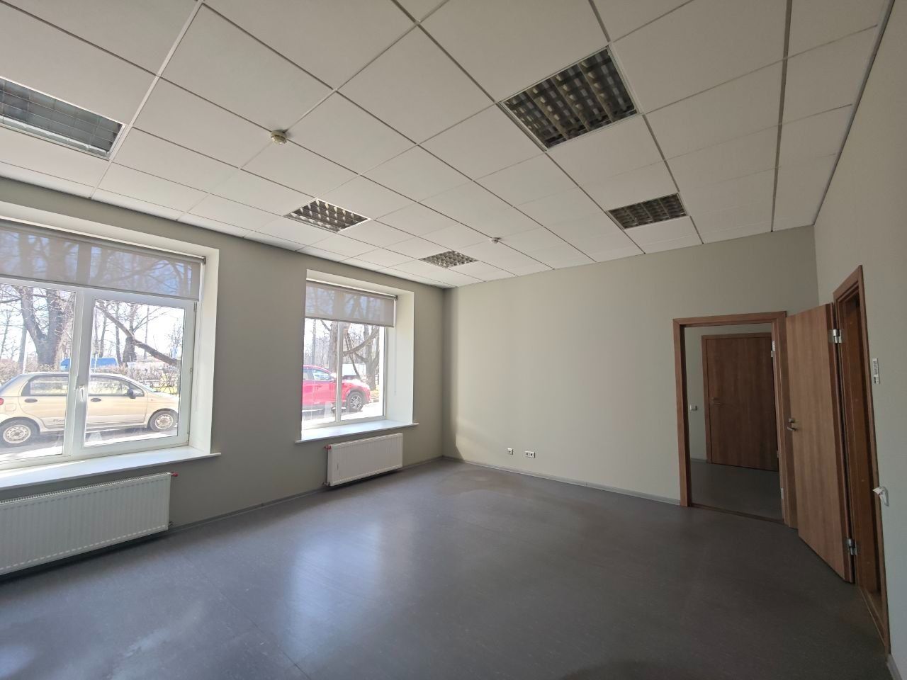 Офис из 2 комнат находится на 1 этаже отдельно стоящего 2-этажного офисного здания, рядом с производственно-складским комплексом.