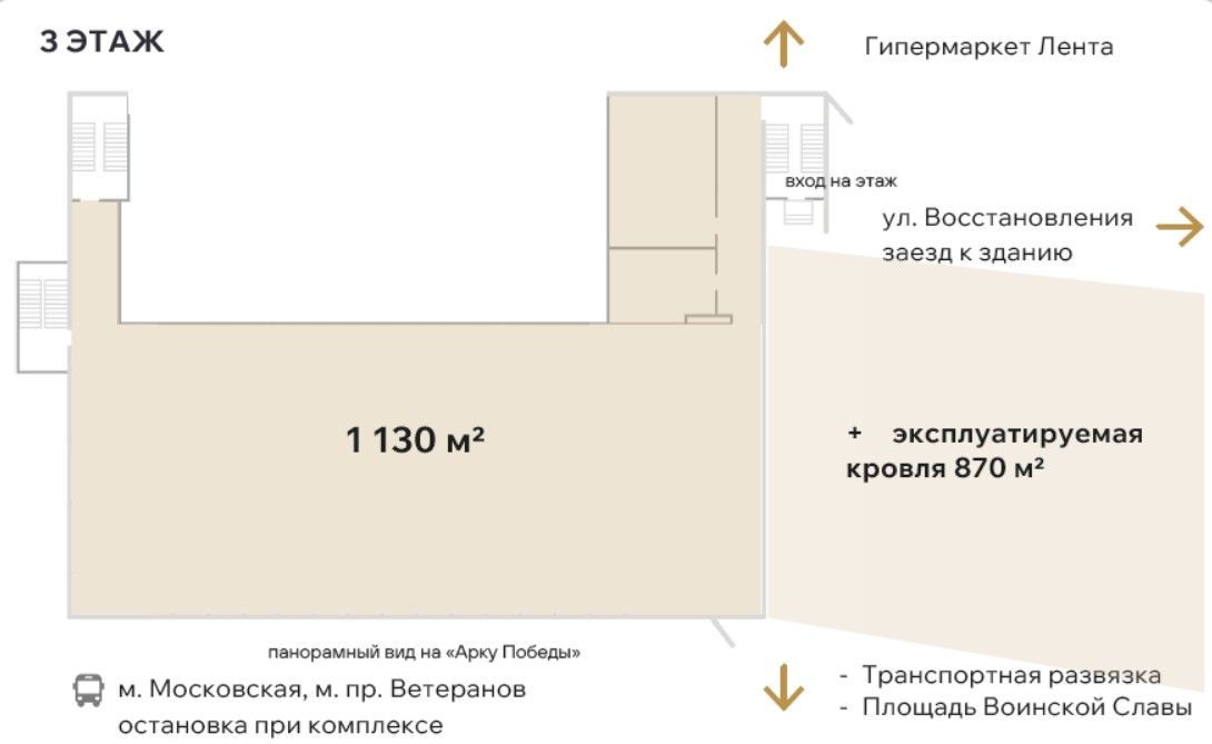ПЛАТИМ АГЕНТАМ. Входим в ассоциацию профессионалов коммерческой недвижимости КОКОН. Готовый арендный бизнес (ГАБ). Доходность 7%, окупаемость до 13.89 лет. Отдельно стоящее 3-х этажное коммерческое здание-комплекс. Объект находится в самом центре Красного Села, напротив Арки Победы. Проект многопрофильного центра, посвященный спортивной тематике. Описание помещения: Помещение расположено на 3 этаже 1130 м2 и эксплуатируемая кровля 870 м2.