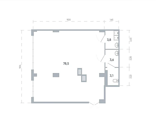 Площадь помещения - 89 м.кв. ;