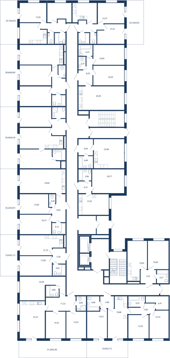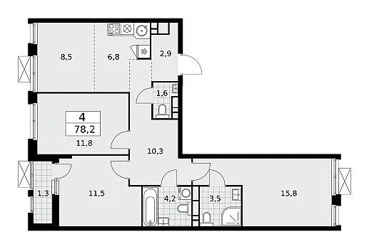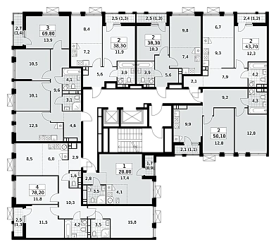 Апартамент № 426 площадью 77,45 кв.м. в корпусе Aqua с видом во двор
