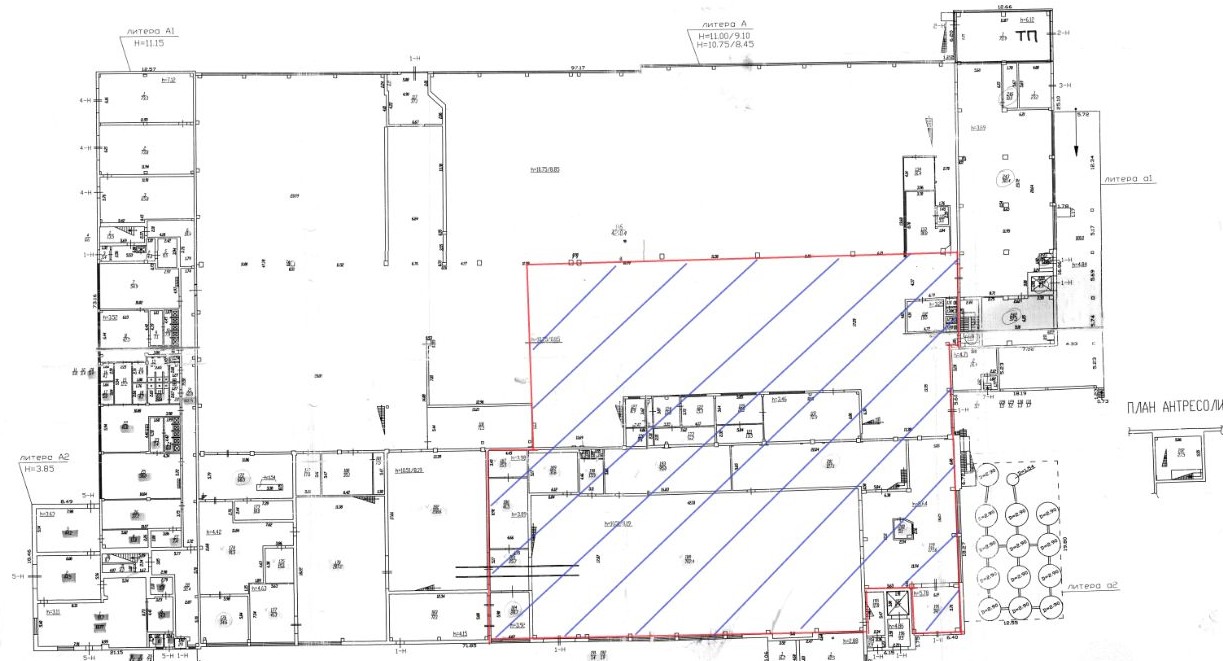 Единое помещение без колонн.