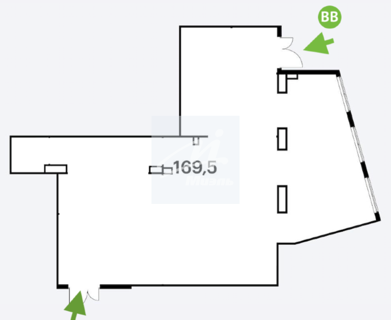 Отдельный вход, витринные окна.