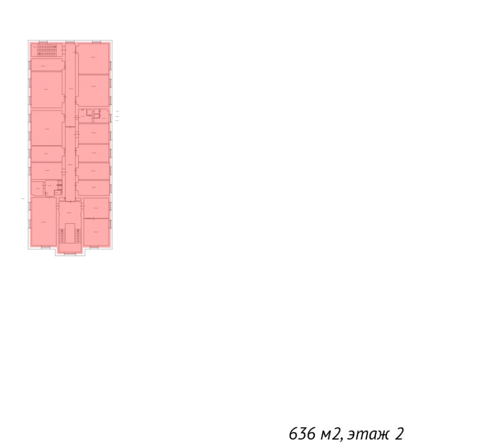 На 2-м этаже расположены офисные помещения общей площадью 636 м2.