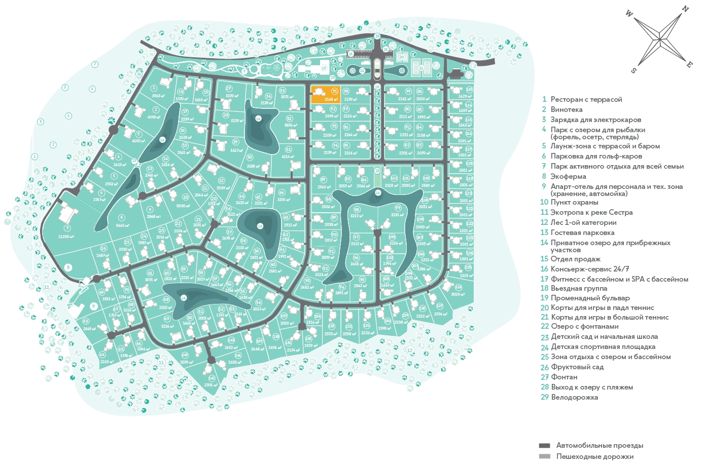 школа, детский сад в пешей доступности, яхт-клуб, конный клуб, торгово-развлекательный комплекс. Оздоровительный СПА Комплекс Грин Флоу Парк и фитнес клуб- всего в 2х км (20 минут пешком)