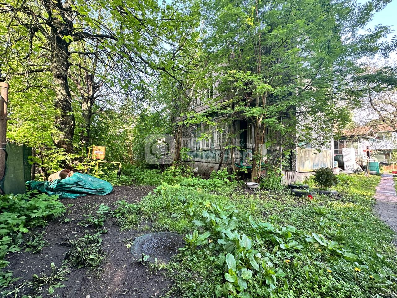 На участке расположен старый дом, плодовые деревья и кустарники.