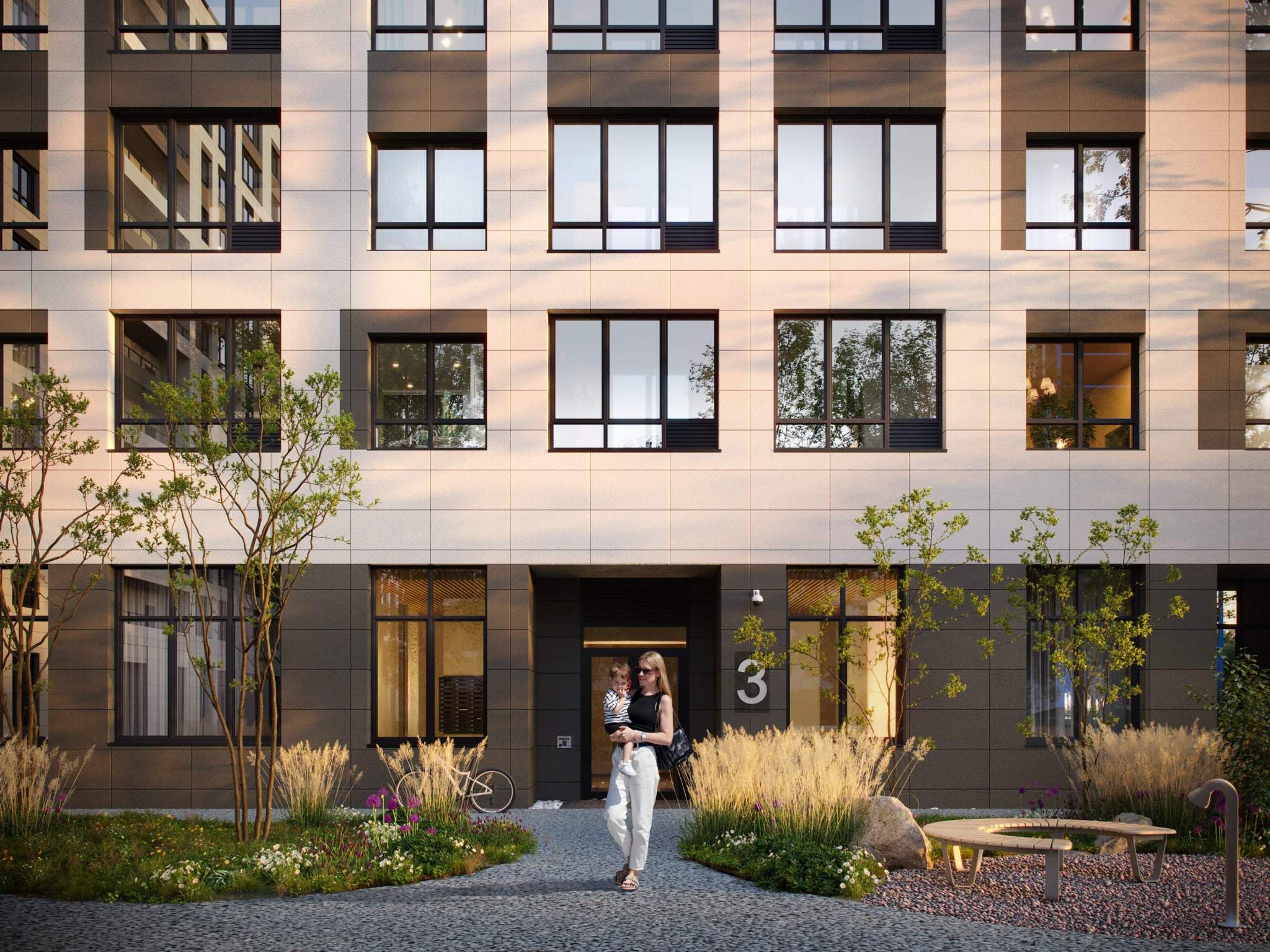 Благоустройство двора от студии ландшафтного дизайна MEGABUDKA отсылает нас к образу зеленого листа. Современная архитектура гармонирует с окружающей средой, а экологические стандарты и «умные» системы обеспечивают ежедневный комфорт.