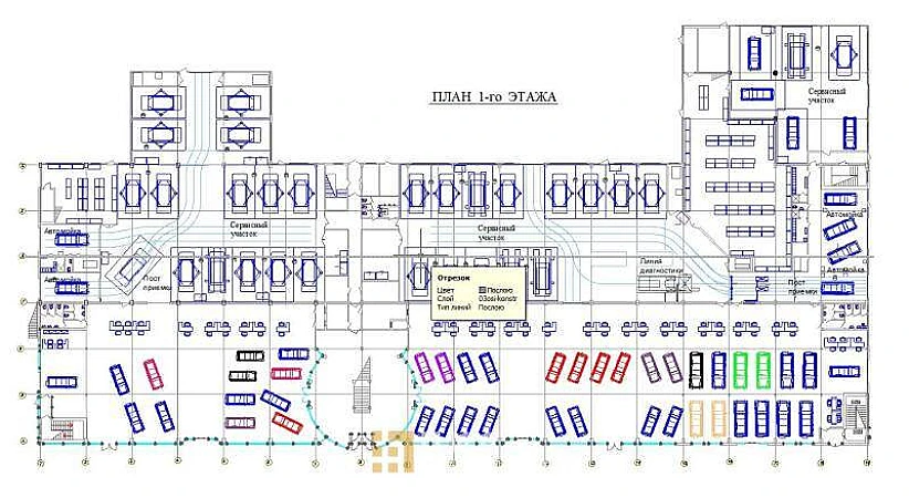Каждый автоцентр разделён на две половины - торговую и сервисную.