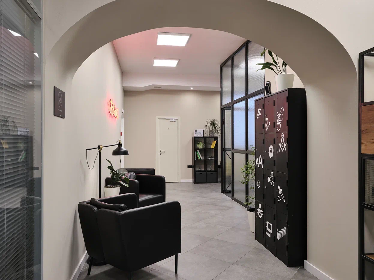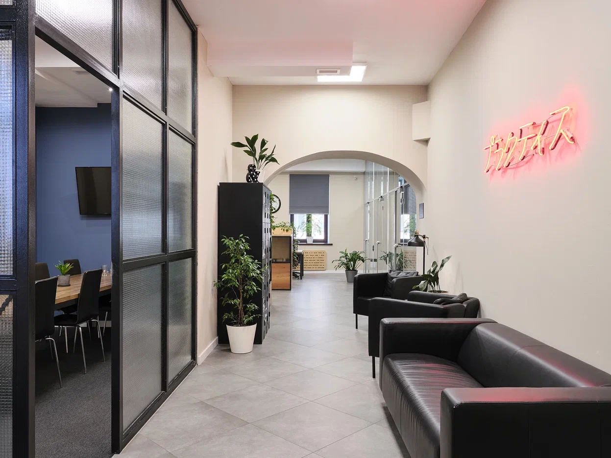Есть оборудованная кухня, санузлы, переговорные комнаты, зона отдыха и ресепшн.