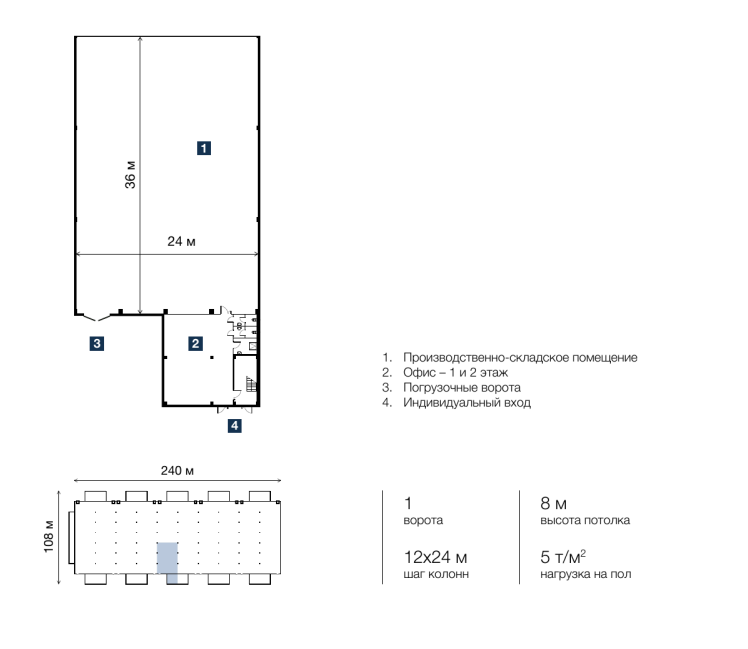 Коммуникации - газ, вода. Отдельный вход. Этаж: 1. Планировка: открытая ( open space ). Типовой ремонт. Высокие потолки. Высота потолка: 9.6м. Тип налогообложения: УСН. Налоговая: 21. Лифты: Нет. Вентиляция: Естественная. Кондиционирование: Нет. Безопасность: Круглосуточная охрана, Контроль доступа, Система пожаротушений, Видеонаблюдение. Провайдеры: . Парковка: Наземная. Доп. параметры склада и производства: Отапливаемый. Лот 75416-125