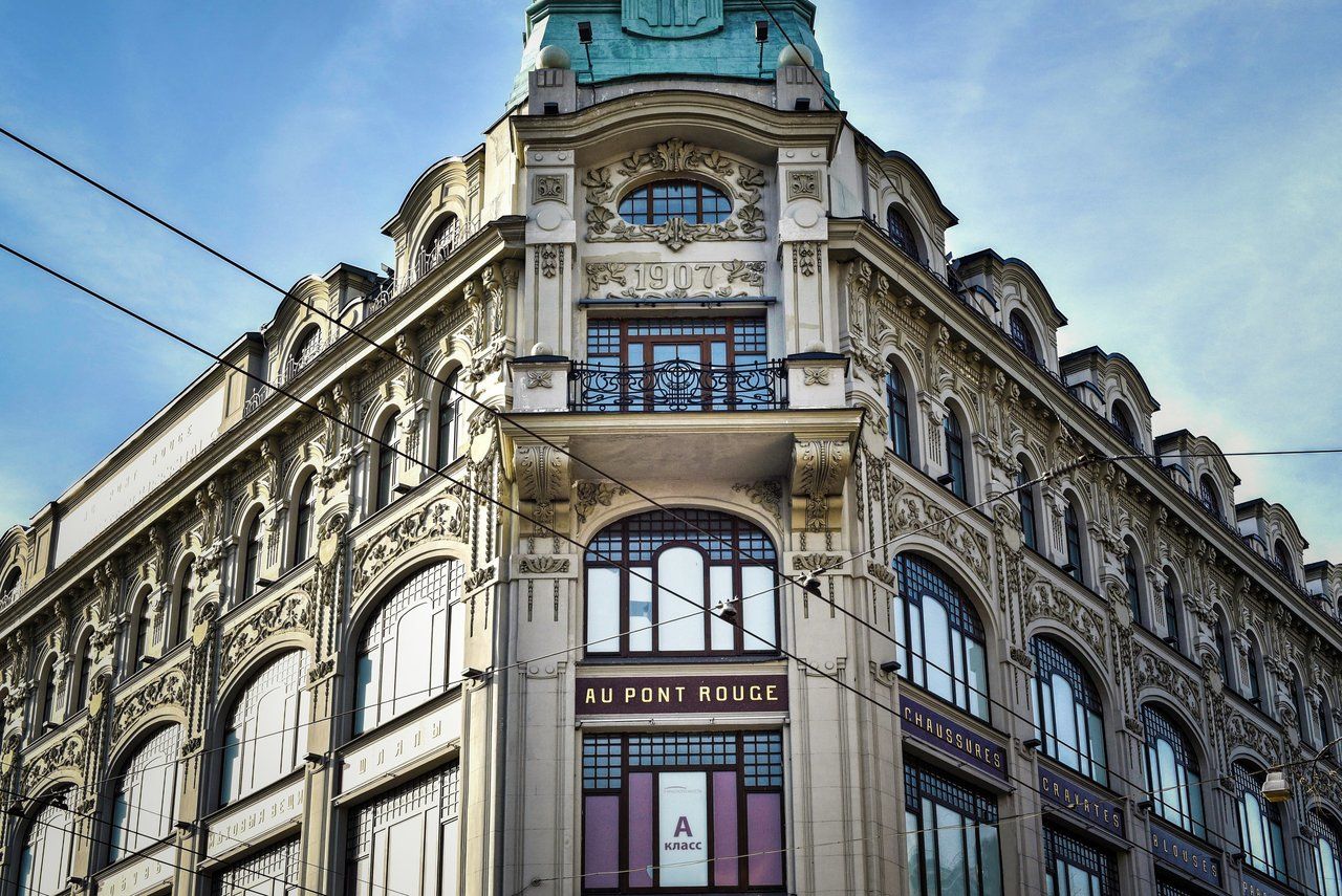 Историческое здание на набережной реки Мойки построено в стиле - Модерн в 1906-1907 году. Здание украшает обильный штукатурный декор. Огромные окна и узкие простенки создают четкую геометрию фасада. Описание помещения: 2 входа - с Набережной реки Мойки и с улицы Гороховой. Есть внутренний вход из универмага.