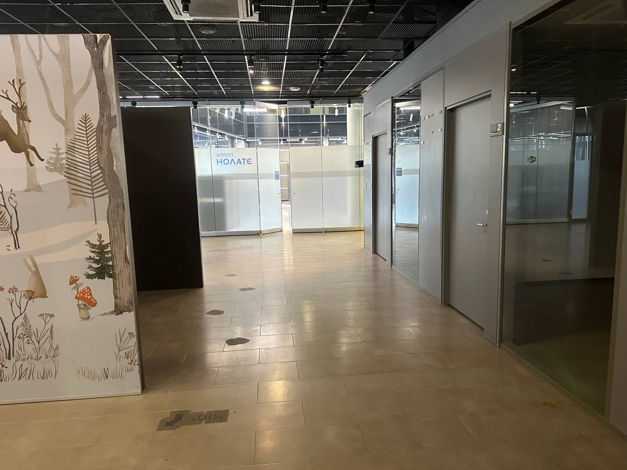 На территории есть парковка - наземная на 300 мест, подземная на 100 мест. Доступ в здание - пропускная система. Описание помещения: В блоке выполнена стандартная офисная отделка - стены под покраску, потолок подвесной, напольное покрытие - линолеум.