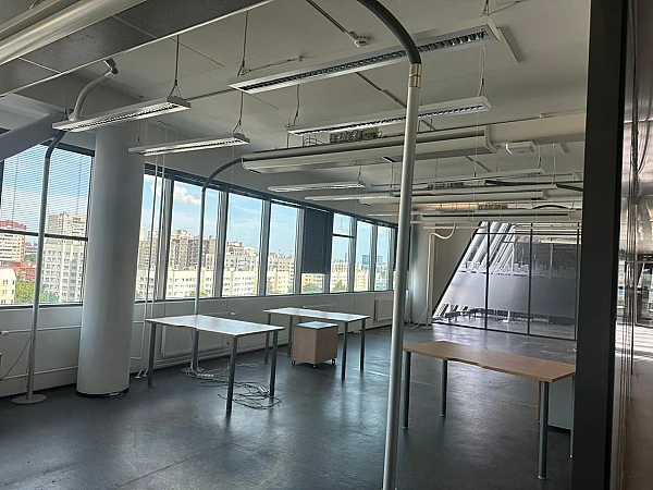 На территории есть парковка - наземная на 300 мест, подземная на 100 мест. Доступ в здание - пропускная система. Описание помещения: В блоке выполнена стандартная офисная отделка - стены под покраску, потолок подвесной, напольное покрытие - линолеум.