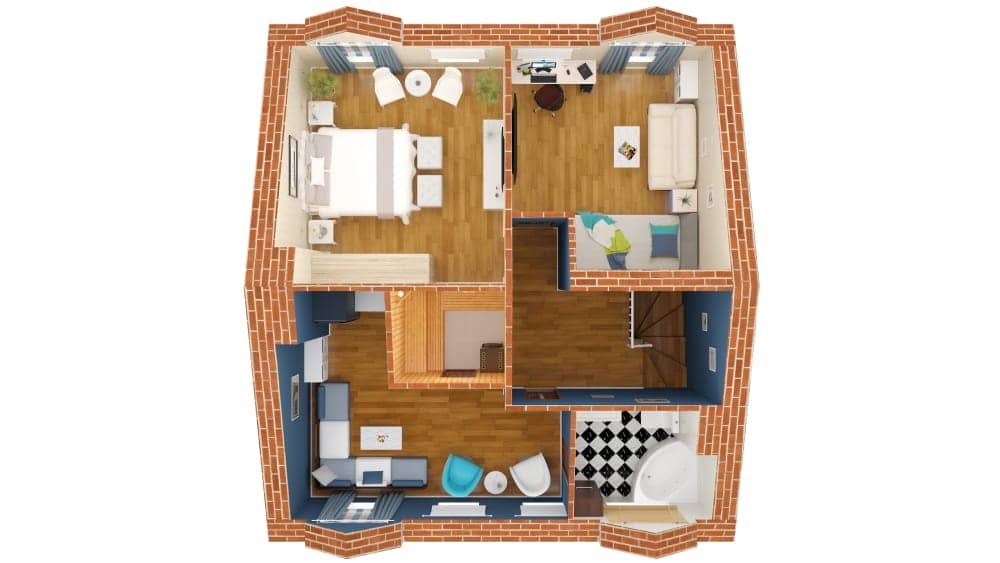 • На мансарде (третий этаж) прекрасно впишется и небольшой спортивный зал, и библиотека, и кинотеатр.