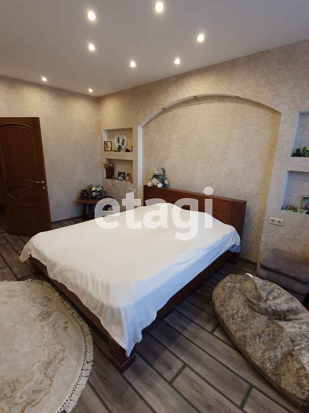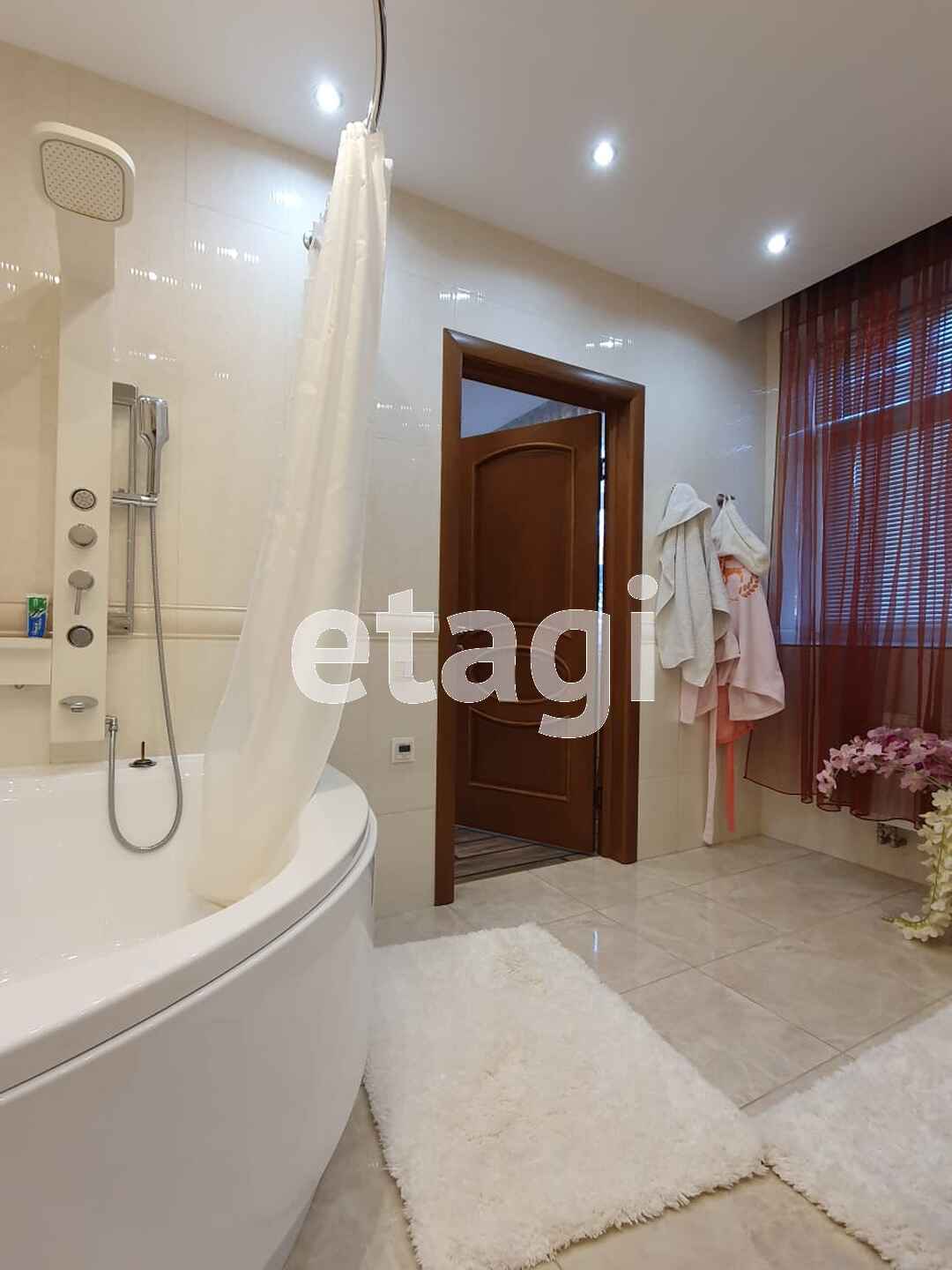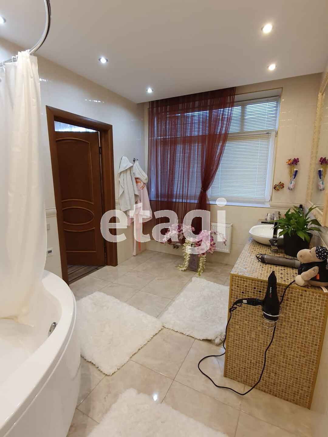 Ремонт и оснащение таунхауса выполнены из дорогих качественных материалов европейских производителей (обои, штукатурка, керамогранит, натуральный камень, массив дерева, хрусталь), техника на кухне Bosch.