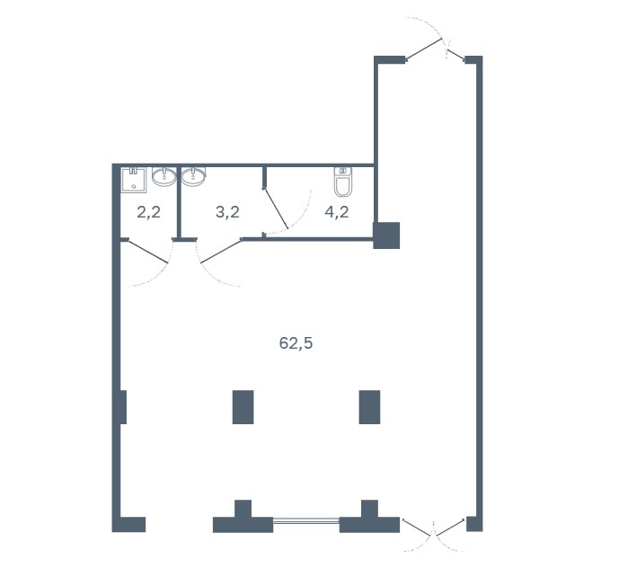 В каждом помещении отдельный вход со двора и из холла.