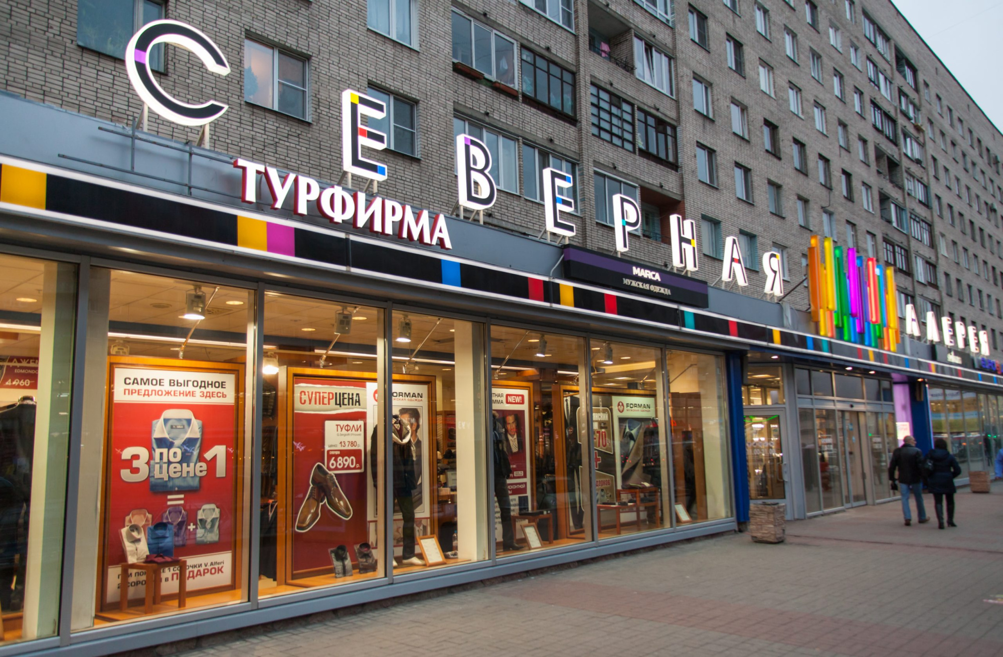 На проспекте Просвещения строится ТРЦ «Прометей», названный по аналогии с кинотеатром, который располагался ранее на этом месте. Общая площадь нового комплекса составляет 27 тысяч квадратных метров. Здесь арендаторы могут снять коммерческое помещение.