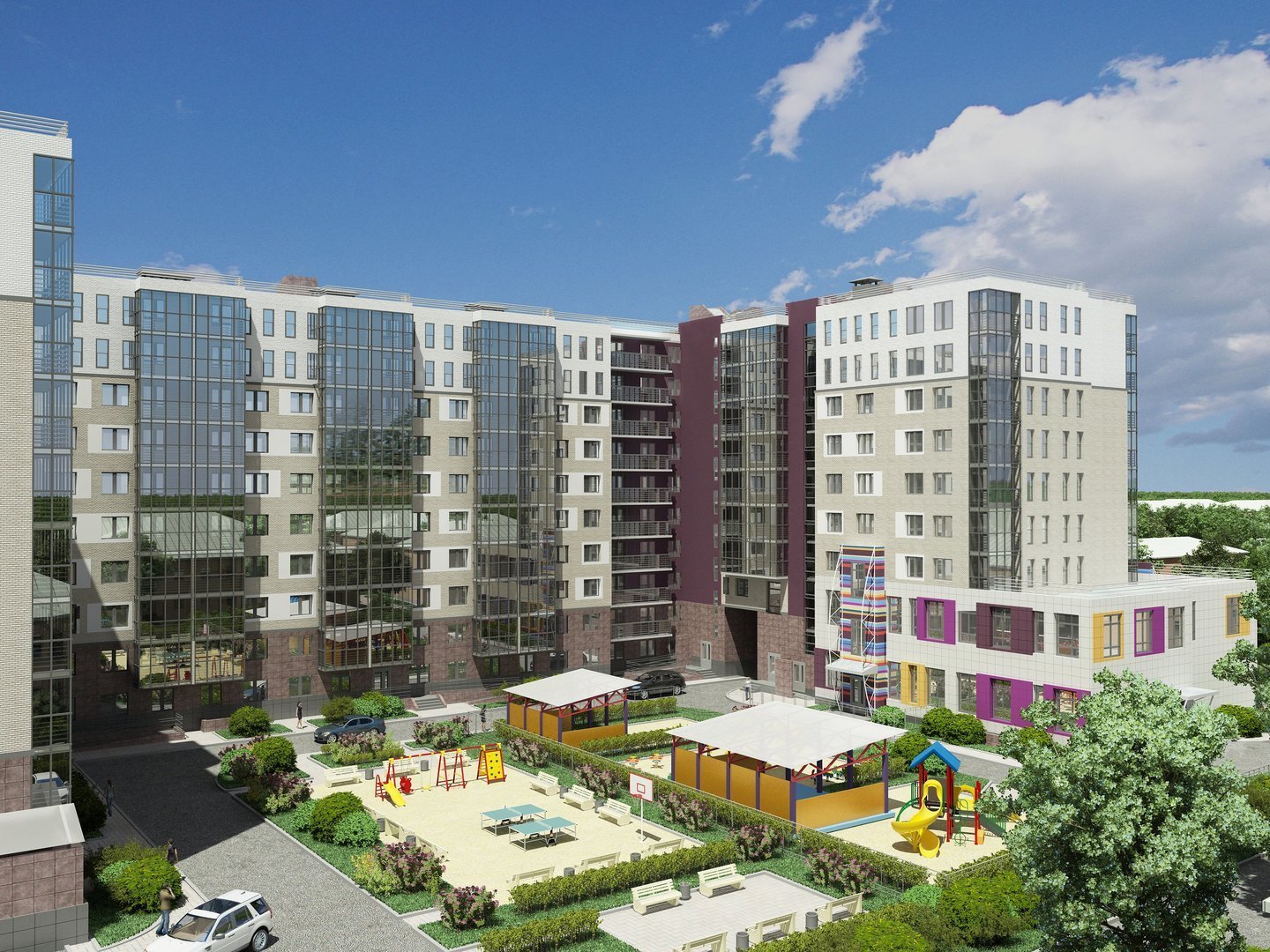 Здание рассчитано на 112 апартаментов: студий, одно – и двухкомнатных площадью от 26,17 до 66,11 кв. м. В комплексе также запроектированы квартиры повышенного комфорта, расположенные на последнем этаже. В данных помещениях установлены большие окна, а высота потолков будет составляет 2,8 м, в то время как на типовом уровне – 2,55 м. Все жилье предложено с полной чистовой отделкой.
