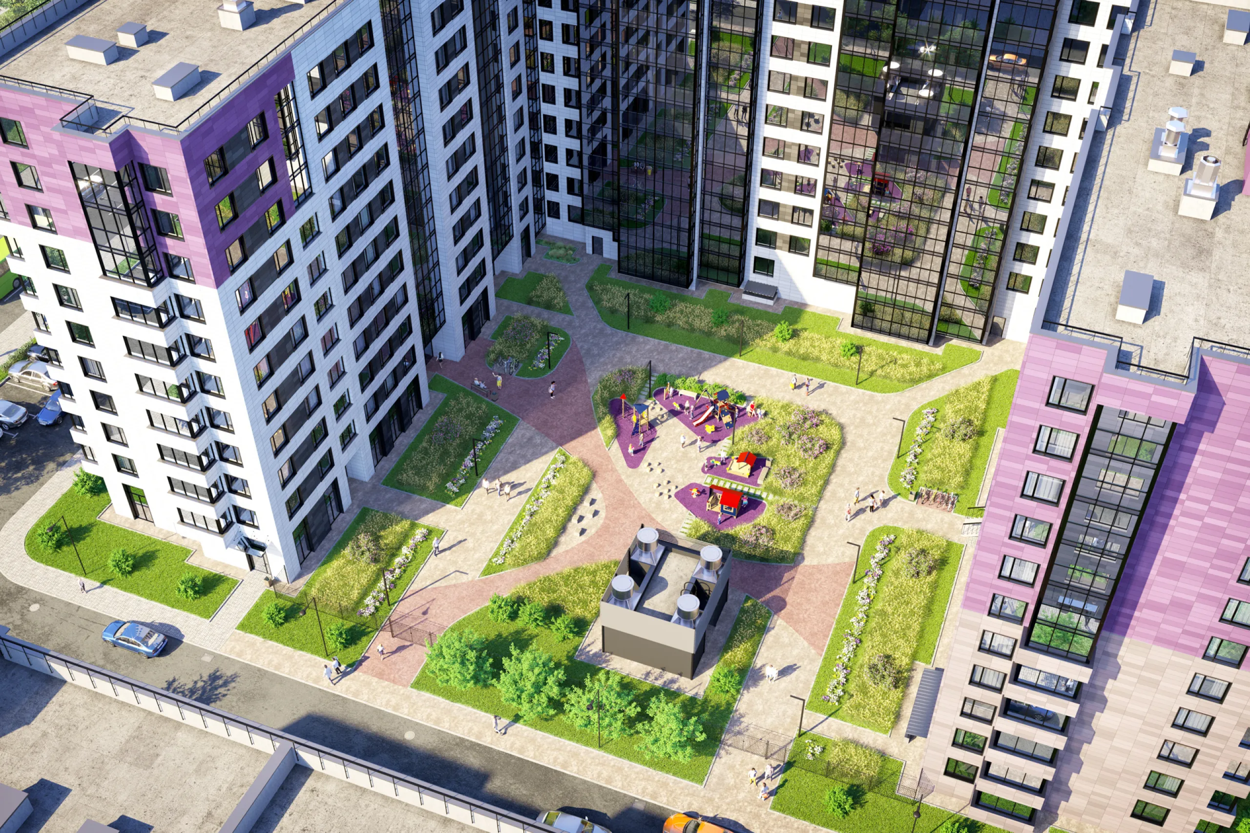 ArtLine объединит пять жилых корпусов по 11 этажей с подземными паркингами, два апарт-отеля по 12 этажей, детский сад и многоуровневый наземный паркинг. Динамичная архитектура проекта притягивает взгляд, а фасады выполнены в смелых фиолетовом, лазурном и желтом цветах. Каждый дом возводится с применением навесного вентилируемого фасада с облицовкой керамогранитом, а остекление имеет специальное солнцезащитное покрытие.