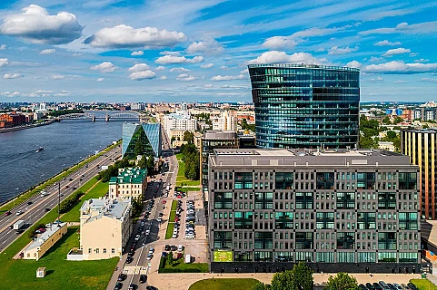 Новый деловой кластер с авторской архитектурой и панорамными видами. Доступ по FaceID и QR. Широкая вариативность планировок: от небольших офисов до здания целиком. Подземный паркинг на 490 машин.