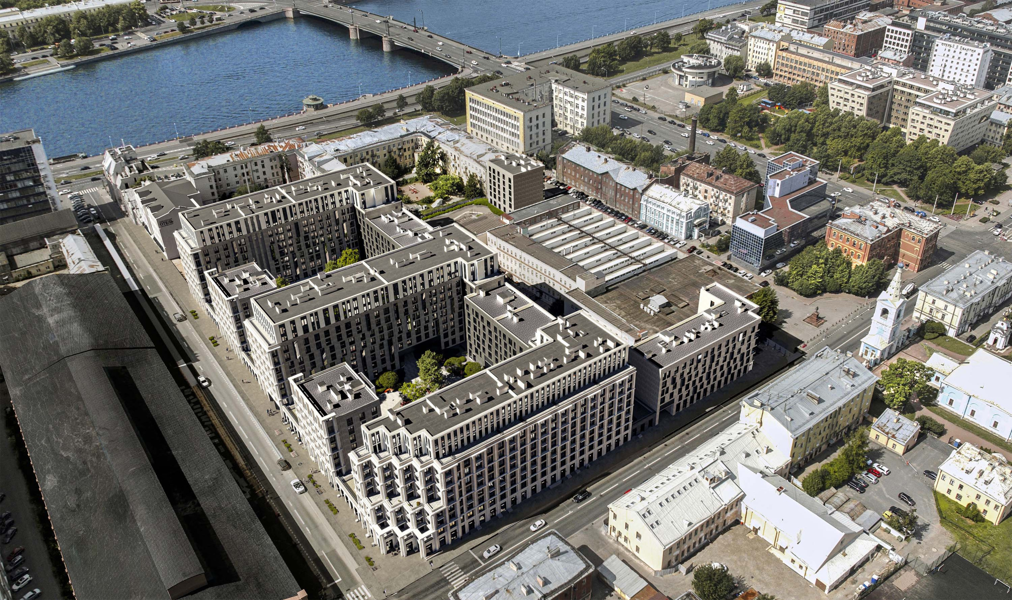 Новый жилой комплекс на Большом Сампсониевском проспекте — это современное переосмысление Выборгского района. Чистота архитектурных форм, уникальный каскадный фасад, открывающий пространство солнечным лучам, создают на этой стороне набережной новый визуальный контекст.