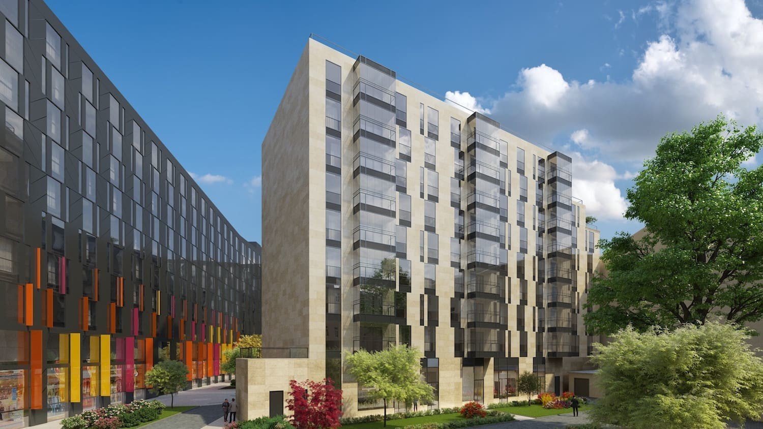Построен он по монолитной технологии и рассчитан в общей сложности на тысячу апартаментов и квартир. Участок земли, занимаемый объектом – почти два гектара. Ранее здесь располагалась фабрика и теперь пространство было реорганизовано под постройку апарт-комплекса. Уровень комплекса – бизнес. Фасады создавались с использованием натурального камня, они также оборудованы системой вентиляции, использованы металлокассеты.